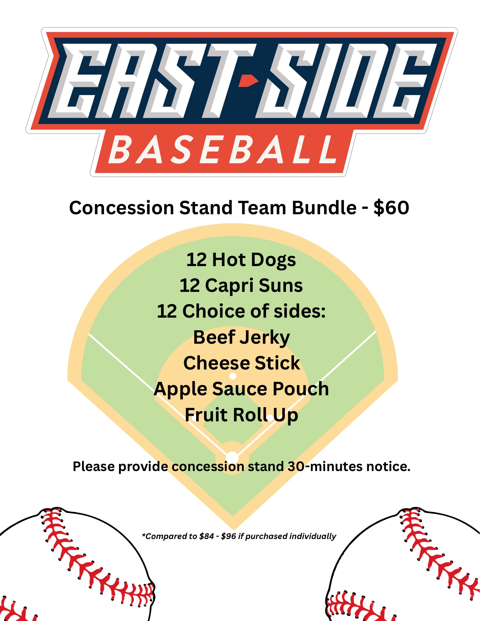East Side Baseball has concession buildings conveniently located near Pinto Field #1, Bronco Field #2, and Turf Field #3.