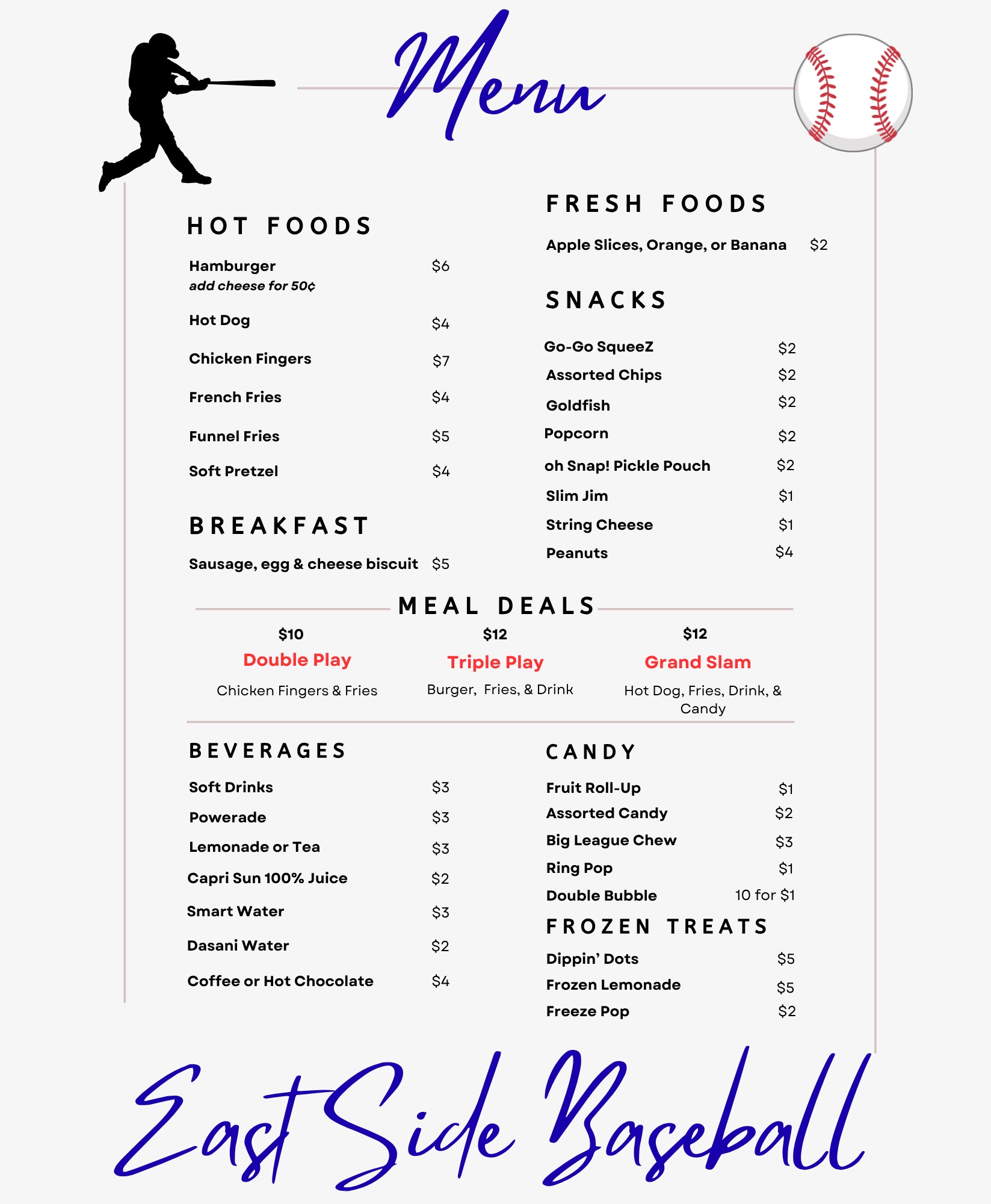 ESBA Concessions Menu