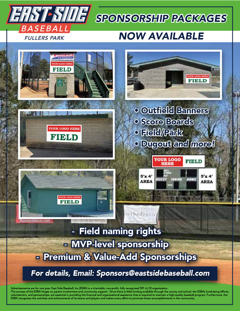 East Side Baseball Association Fullers Park, 3499 Robinson RdMarietta, Georgia 30068